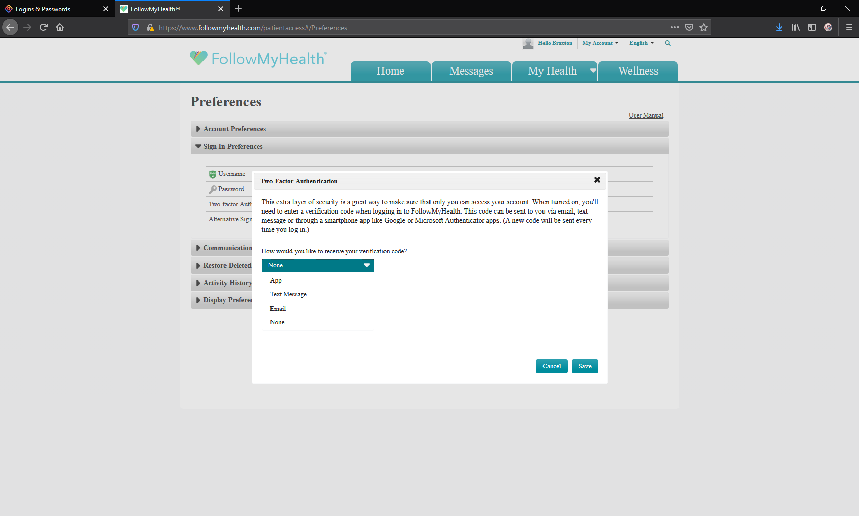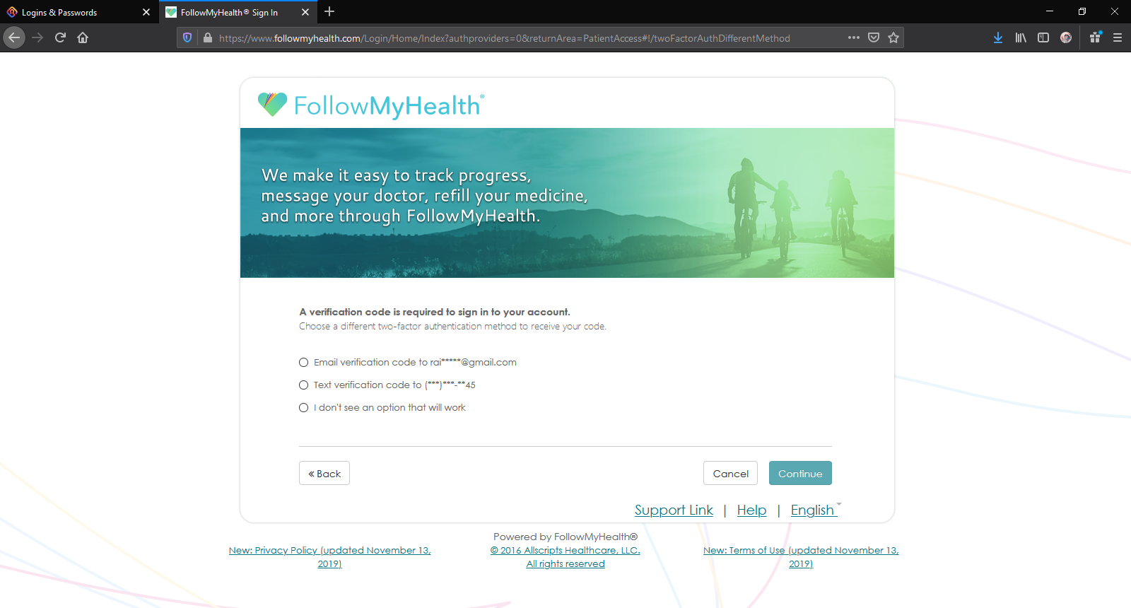 | Remarks | automatic SMS backup signup using phone number on file; automatic email backup signup using email on file; backups cannot be disabled once set |